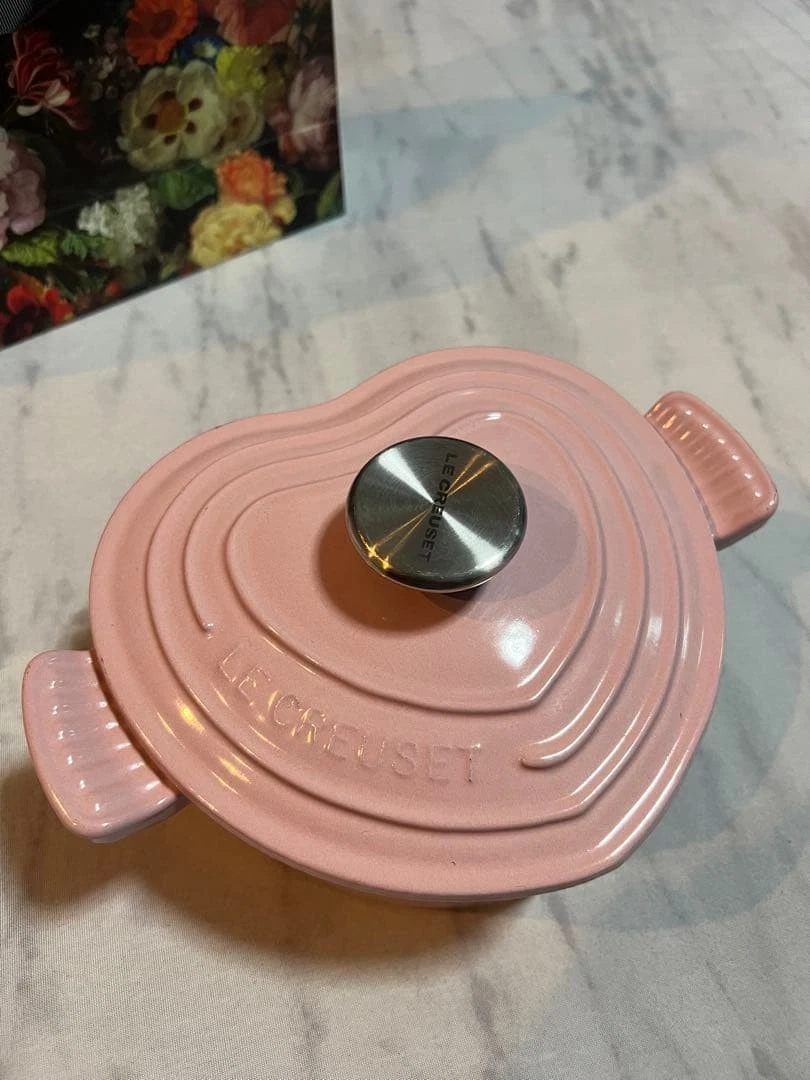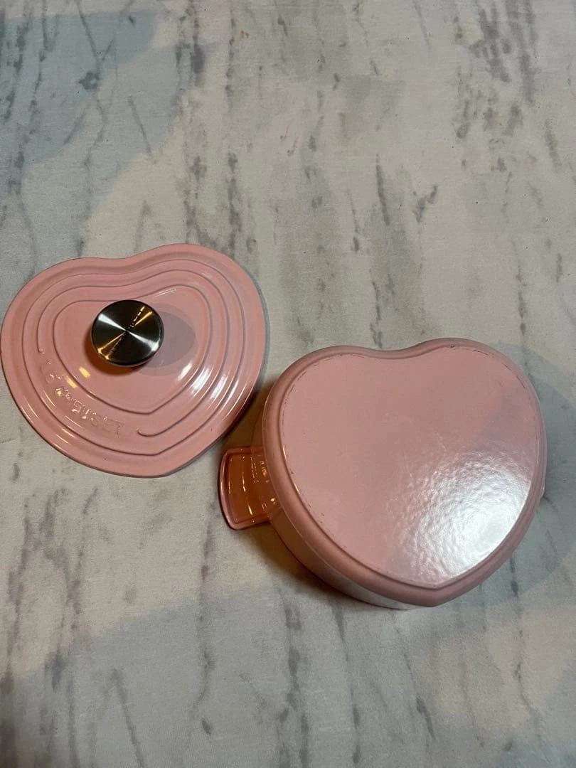 Excellent condition Le Creuset heartshaped pot pink approximately 18cmExcellent condition Le Creuset heartshaped pot pink approximately 18cm