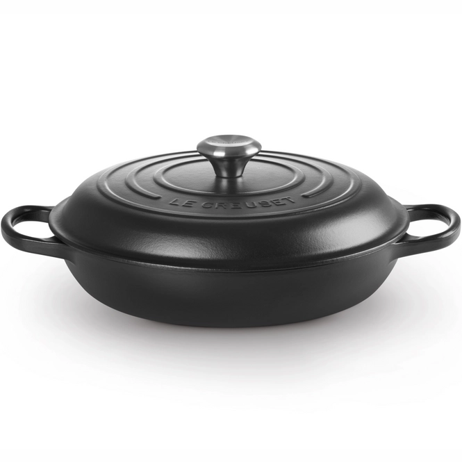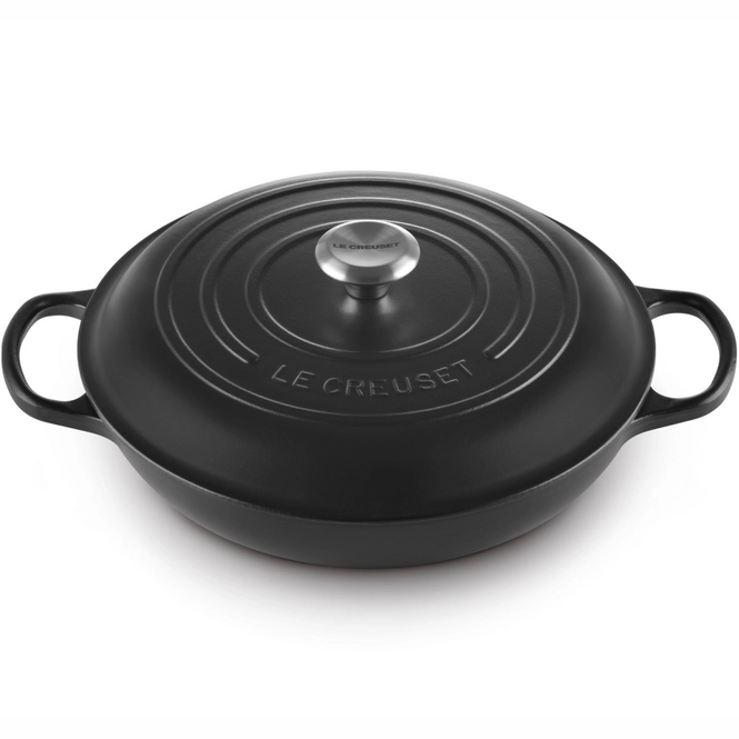 This versatile Dutch oven comes from the renowned French brand Le Creuset. Le Creuset has been a household name among food lovers for years, known for its high-quality products. This model is lower than traditional Dutch ovens, and its special shape is ideal for simmering or sautéing. The Dutch oven is made of enameled cast iron. The lid features a heat-resistant stainless steel knob. The Dutch oven is dishwasher-safe and comes with a lifetime warranty.