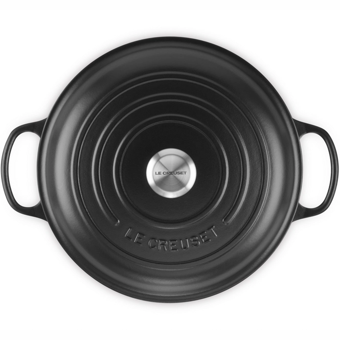 Le Creuset’s high-quality pans each offer unique features and benefits. Enameled cast iron pans feature a glass-like enamel coating. The sand-colored inner layer is ideal for versatile use and is easy to clean. We recommend using them for stews and baking bread. Matte black enamel is ideal for frying and produces a crispy crust. We therefore recommend cooking meat, fish, and vegetables in this type of pan. In addition to these features, enameled cast iron generally offers many positive aspects: