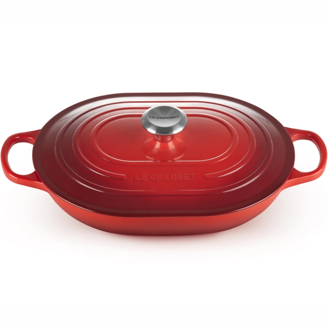 This beautiful casserole dish from Le Creuset is part of the Oblong series. Its beautiful material makes this pan of high quality. The pan is made of enameled cast iron and has a capacity of 3.4 liters. Furthermore, this pan is easy to use and clean. The knob is heat-resistant up to 260 degrees. The handles provide additional comfort during use. The frying pan is suitable for all heat sources.